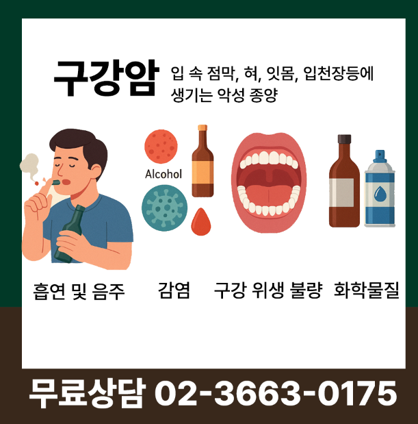 구강암은 입속 점막, 혀, 잇몸, 입천장 등에서 생기는 악성 종양입니다.