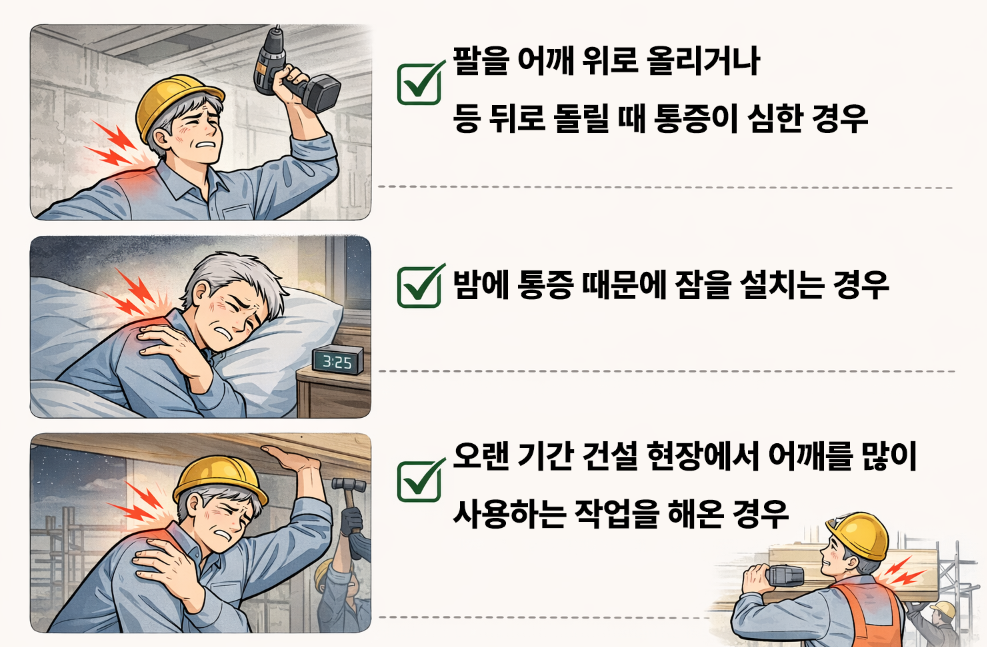 ✔ 오랜 기간 건설 현장에서 어깨를 많이 사용하는 작업을 해온 경우