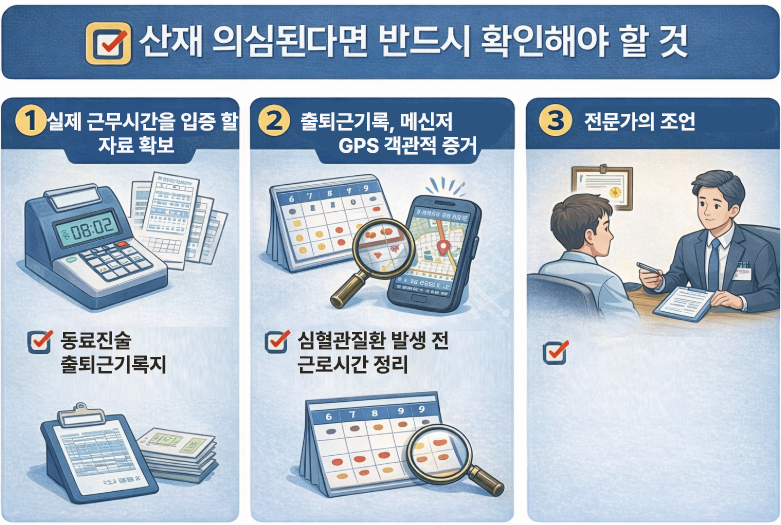 특히 지병이 없는 경우일수록 업무 인과관계 입증이 더 중요합니다.