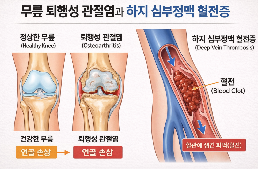 퇴행성 관절염뿐 아니라 심부정맥 혈전증 역시 장시간 혈관 압박과 관련이 있음