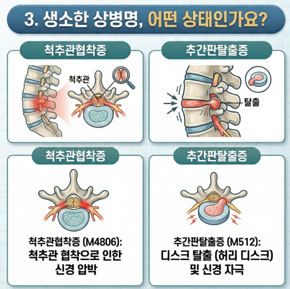 두 질환은 서로 다른 질병이지만 장기간 반복된 허리 부담 작업이 있을 경우 동시에 발생하는 경우도 적지 않습니다.
