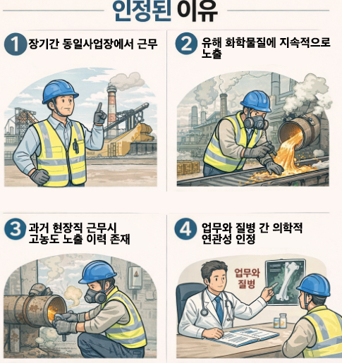 장기간 산업현장에서 근무하며 유해물질에 노출된 경험이 있다면 단순 질병으로 넘기지 말고