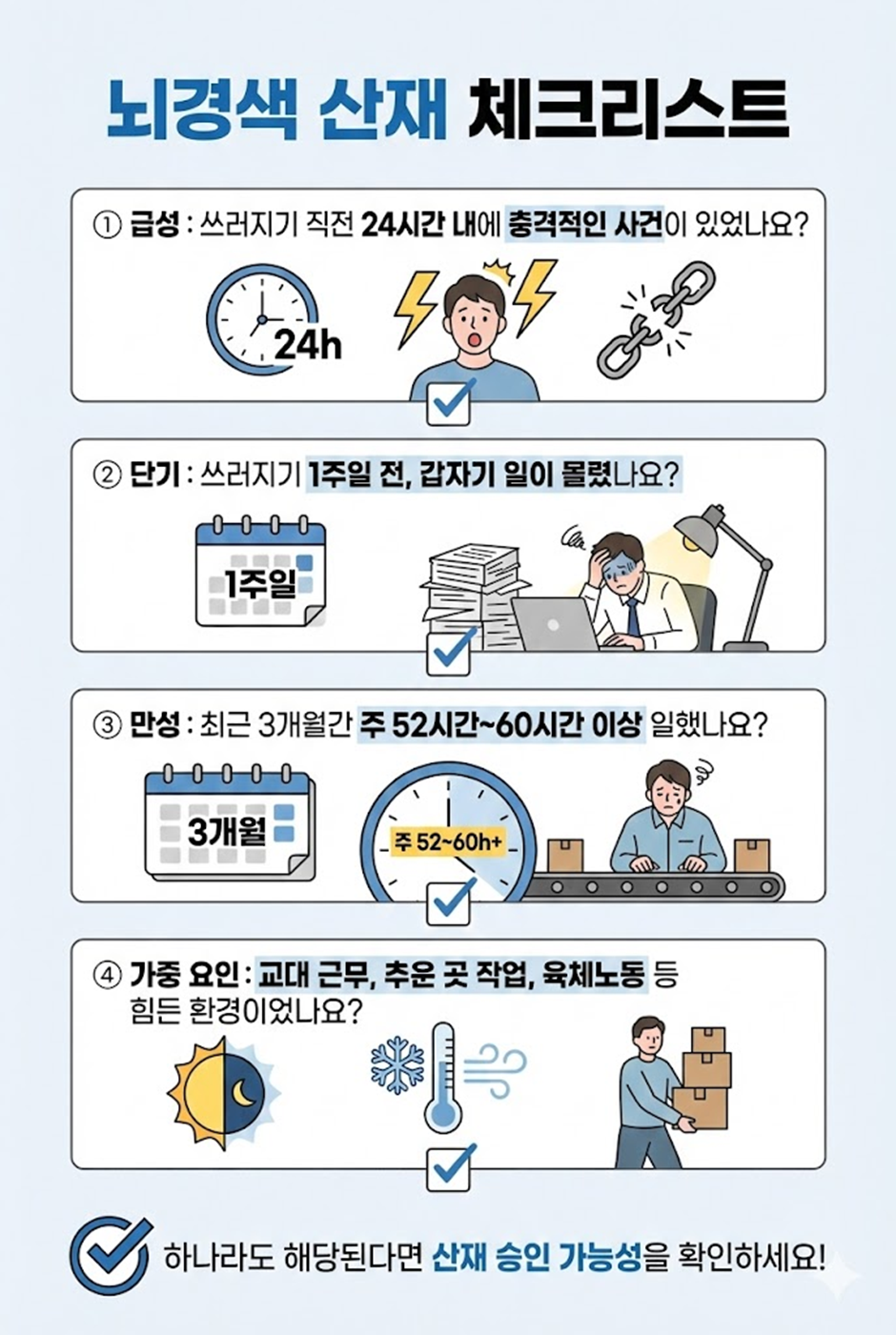 하지만 뇌혈관 질환 역시 업무환경과의 관련성이 입증된다면 충분히 산업재해로 인정될 수 있습니다.