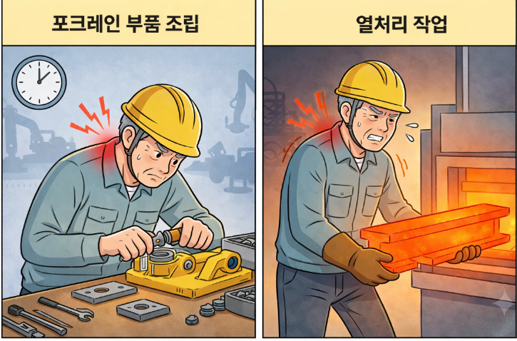 또한 열처리 공정에서는 무거운 금속 부품을 반복적으로 다루며