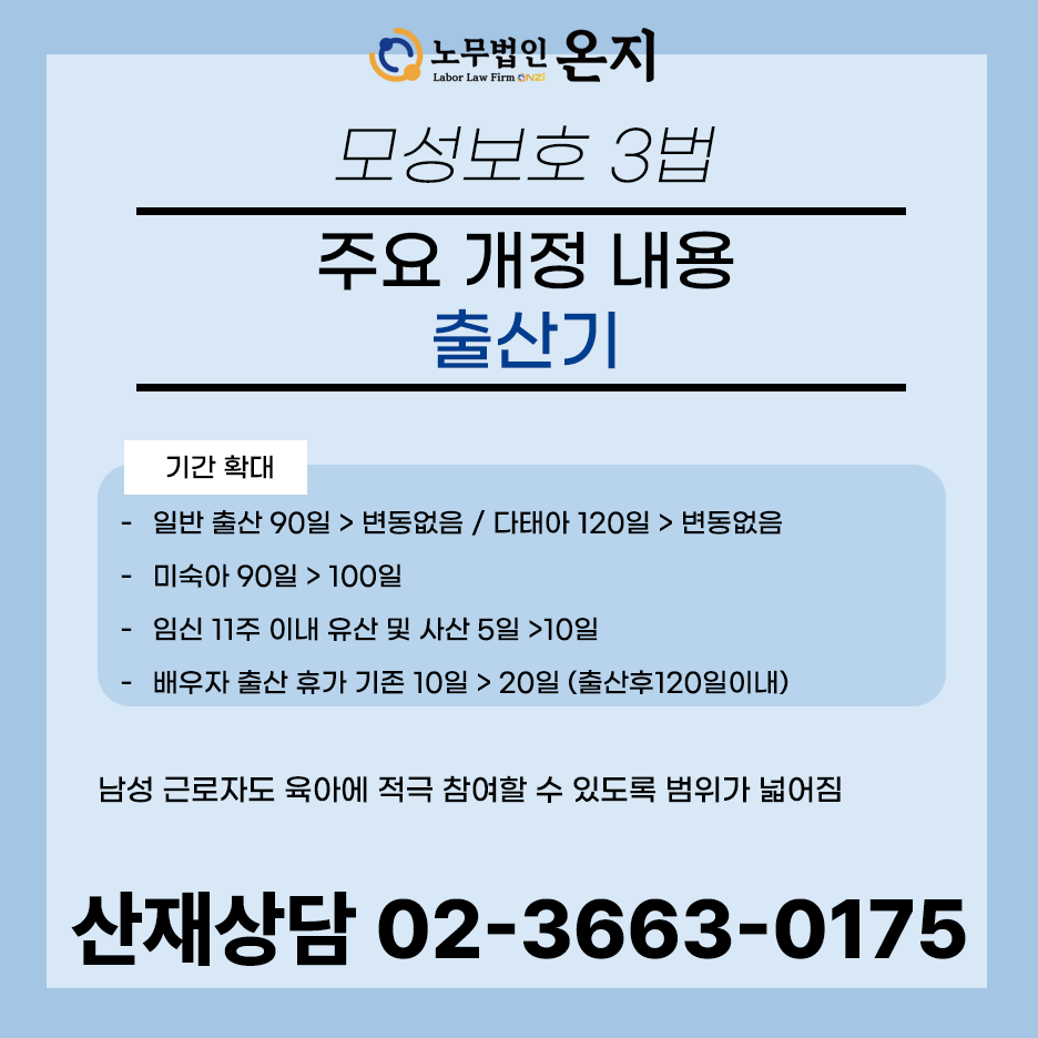 오늘은 이 모성보호 3법의 주요 내용과 변화된 점들을 정리해드릴게요.